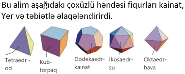 Qədim yunan filosofu Platon çoxüzlü həndəsi fiqurları kainat, Yer və təbiətlə əlaqələndirirdi.