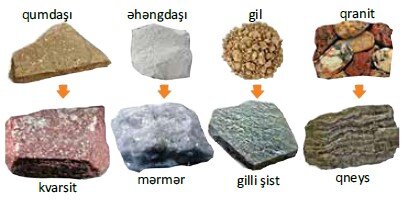 Metomorfik süxurlar yüksək təzyiq və temperatur şəraitində maqmatik və çökmə mənşəli süxurların dəyişməsindən yaranır. Bəzən maqmanın yer qabığı qatlarına daxil olması və ya yer qabığının müəyyən sahələrinin çökməsi nəticəsində süxurlar dəyişilir. Nəticədə onlar yeni xassələrə malik olur. Belə dəyişmə prosesində süxurların kimyəvi tərkibi az, fiziki xassələri isə tam dəyişilir. Metamorfizm prosesi (metamorfoz – yun. çevrilmə) nəticəsində kristallik quruluşlu, möhkəm və davamlı süxurlar yaranır. Bu proses nəticəsində əhəng daşından mərmər, qum daşından kvarsit, qranitdən qneys, gildən gilli şist, kömürdən almaz yaranır.