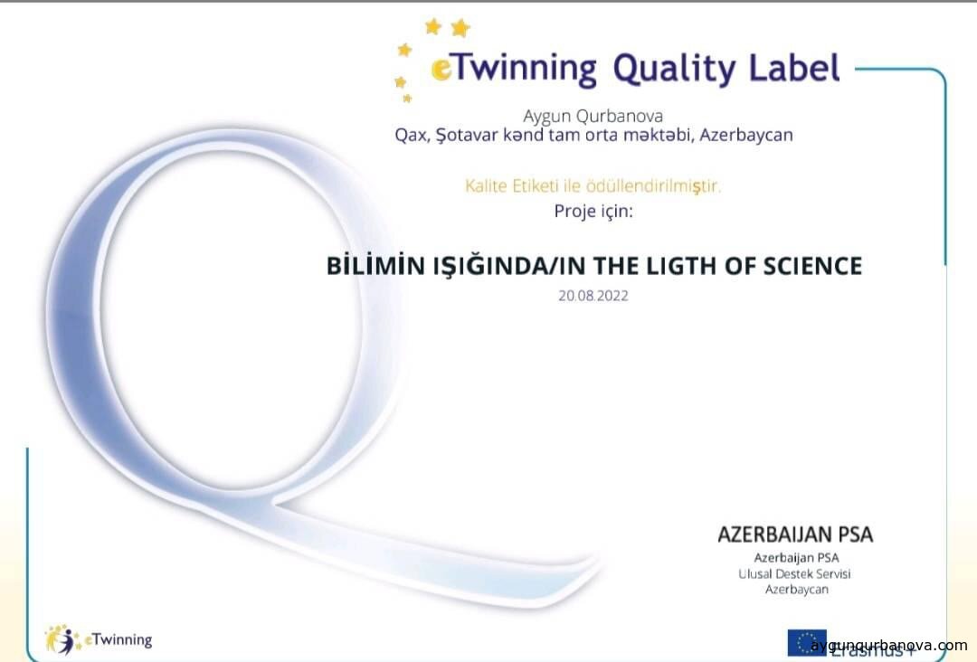 İlk layihə təcrübəm “Bilimin işığında” layihəsi ilə Türkiyədən 10 müəllimlə əməkdaşlıq etdim, məktəbimizin şagirdləri faydalı məlumatlar əldə etdi və yeni proqramlar öyrəndi