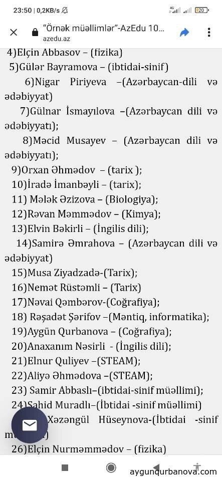 AzEdu təhsil portalı yeni bir layihəyə start verib.Respublikanın 100 örnək müəllimi siyahısında adımın qeyd olunmuşdu