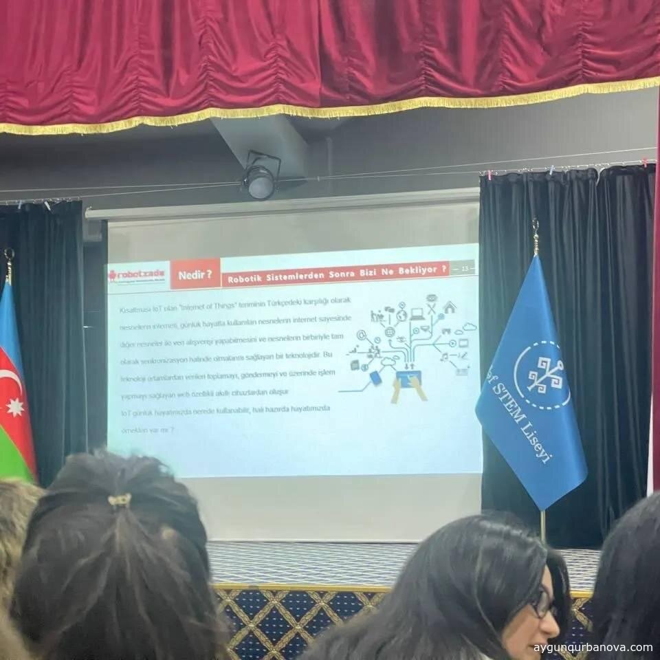 27-28 yanvar tarixində keçirilən "Hədəfdə STEAM-5 beynəlxalq interaktiv təlim" də iştirak etdim.Açılış mərasimində o qədər dəyərli fikirlər deyildi ki, tamamən məndə yeni ideyalar formalaşdı, təqdim edilən hibrid nümunəvi dərslərdən isə sözün əsl mənasında zövq aldım ,əslində bütün fənlər bir biri ilə inteqrasiya şəklində şagirdlərə öyrədilməlidi.Təlimin digər ən maraqlı tərəfi isə sosial şəbəkədən tanıdığım bir çox müəllimlə əyani tanış oldum və yeni fikirləri müzakirə etdik